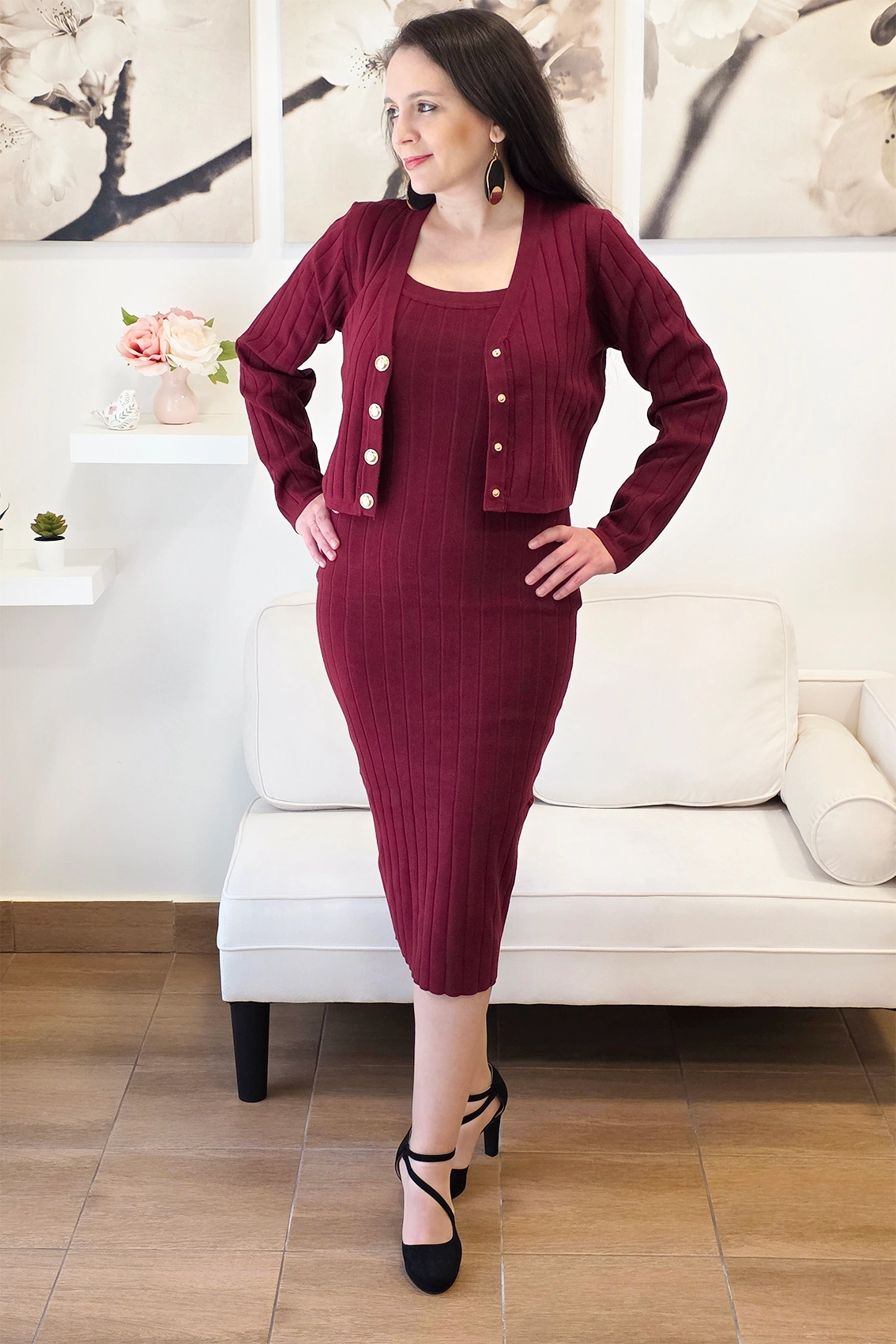 Szuper csinos szett , ami egy pántos ruhából és egy kardigánból áll. Nagyon kényelmes.