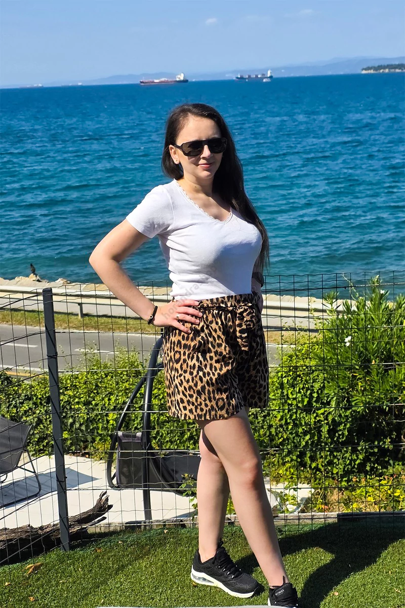 A rövid nadrág magabiztosságot sugároz, és remekül kiemeli a lábakat, míg a fekete póló egyszerűsége tökéletesen kiegyensúlyozza a mintás darab extravaganciáját. Ideális választás nyári városi sétákhoz, fesztiválokra vagy baráti találkozókra, ahol nem szeretnél kompromisszumot kötni a kényelem és a divat között. A short magas dereka optikailag nyújtja a lábakat.