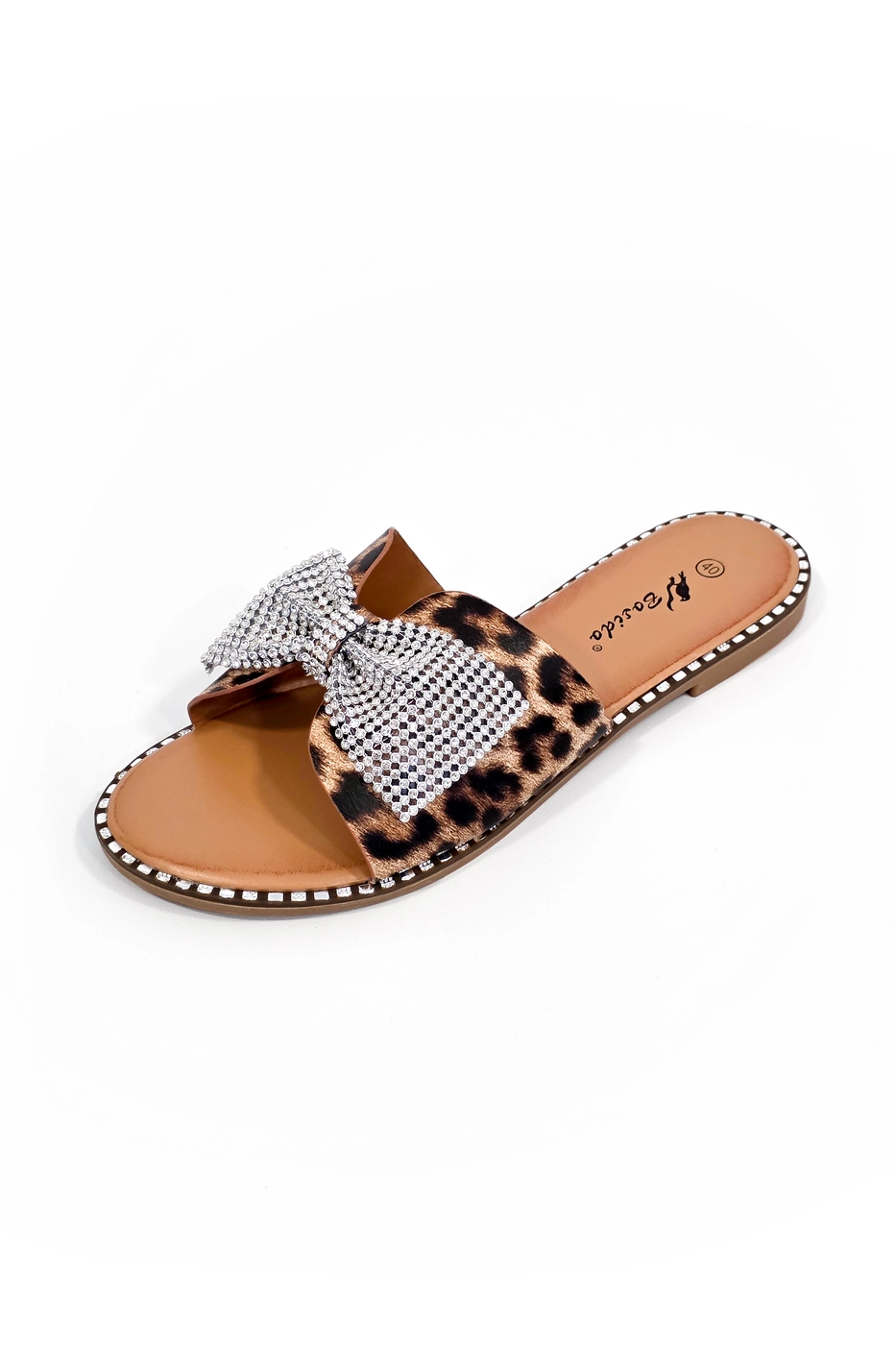 Nagyon csini leopárd mintás papucs strasszköves masnival. Viseld leopárd mintás felsővel és fekete nadrággal, vagy fekete overállal és leopárd mintás táskával.